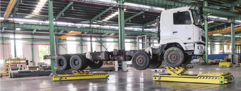 It can meet the production requirements of multi-variety mixed line production, flexible layout of production line, information interconnection of production line, fixed station assembly and free switching of uniform speed assembly mode along line. The assembly line has the advantages of less ground construction, good flexibility, high automation degree and green environmental protection, which is the development trend of commercial vehicle assembly line in the future.