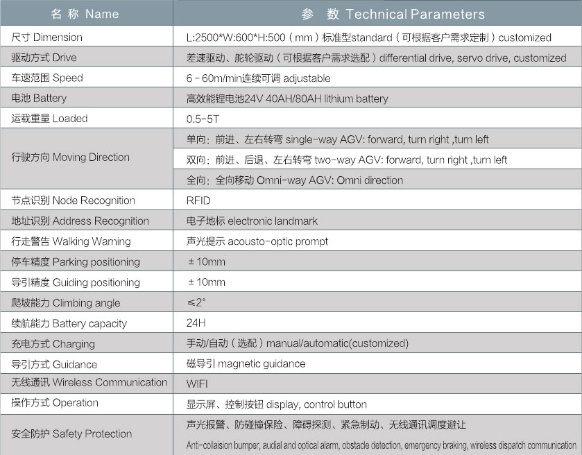 Load-bearing type is the automatic handling method that directly places the material in the AGV body, which is used to support the workpiece by placing all kinds of tooling, which can replace the catenary, the traditional equipment such as the trolley, and Load the goods on the flat load-bearing AGV trolley, which can realize the seamless docking of the goods. Load-bearing AGV unmanned transport vehicles can be used together to form an assembly line, instead of the assembly line, forming a flexible production system.