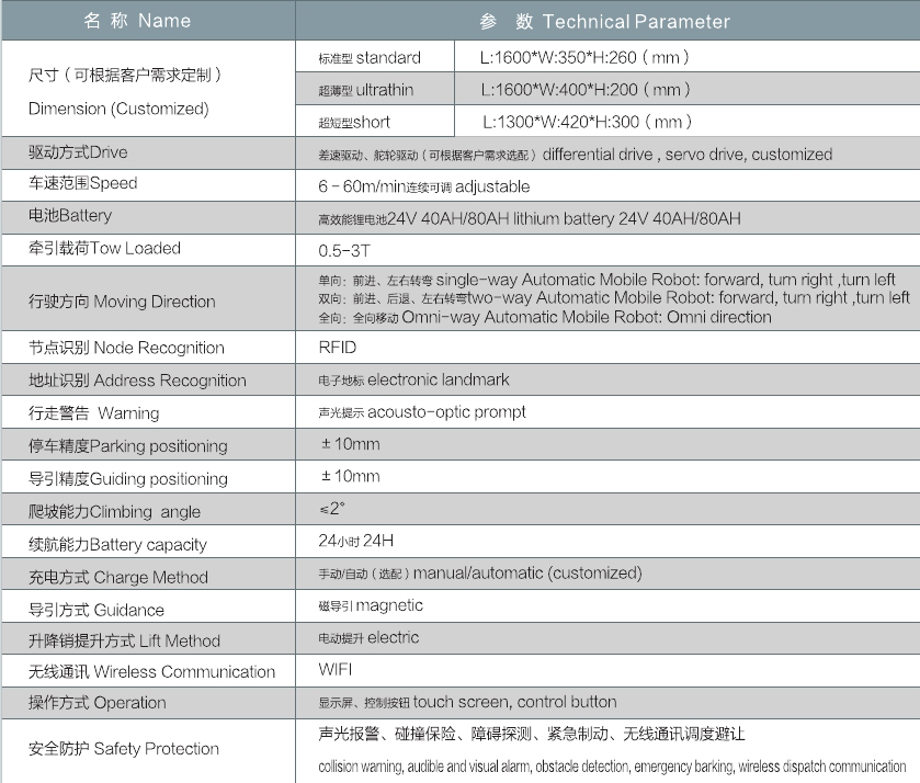 潜入型工业移动机器人小车具有非常低的尺寸,可自动潜入到工装台车底部,实现自动挂钩与脱挂的无人操作运输,利用电动升降挂钩牵引工装台车通过磁条导引读取指令,识别路口与站点运行到达指定位置,到达指定位置后工业移动机器人自动和工装台车分离,然后钻到空台车的下面,沿设定线路把空的台车运走,可代替牵引车及人力推车等运输工具,节约人力成本,可广泛应用于车间零部件转运。潜入型工业移动机器人小车的最大牵引载荷为3T。潜入型工业移动机器人小车非常适合用于狭小空间里的自动化运送,由于其安全可靠,故障率低。潜入型工业移动机器人小车广泛应用于以下环境,包括: